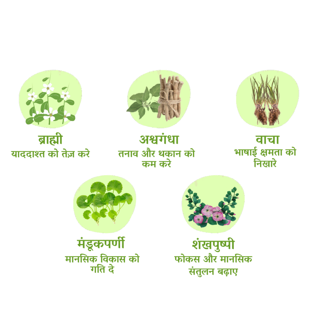 рдЗрд╕рдХреА рдЖрдпреБрд░реНрд╡реЗрджрд┐рдХ рдЬрдбрд╝реА-рдмреВрдЯрд┐рдпрд╛рдБ рдЬреИрд╕реЗ рдЕрд╢реНрд╡рдЧрдВрдзрд╛, рд╢рддрд╛рд╡рд░реА, рд╡рд┐рджрд╛рд░реАрдХрдВрдж рдФрд░ рдмреНрд░рд╛рд╣реНрдореА рдмрдЪреНрдЪреЗ рдХреЗ рд╢рд░реАрд░ рдХреЛ рдордЬрд╝рдмреВрддреА рджреЗрддреА рд╣реИрдВ, рдкрд╛рдЪрди рд╕реБрдзрд╛рд░рддреА рд╣реИрдВ, рднреВрдЦ рдмрдврд╝рд╛рддреА рд╣реИрдВ рдФрд░ рд╕рдореНрдкреВрд░реНрдг рд╡рд┐рдХрд╛рд╕ рдореЗрдВ рдЕрд╣рдо рднреВрдорд┐рдХрд╛ рдирд┐рднрд╛рддреА рд╣реИрдВред